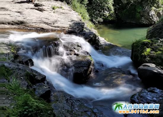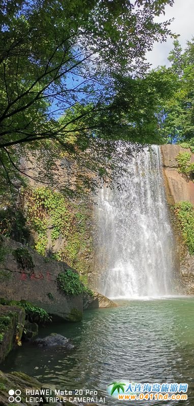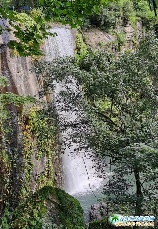 第二打卡地·飛瀑澗:青山飛瀑,俗稱“飛瀑澗”。別小看這一簾飛瀑,它可是遼寧省聞名遐邇的第一大瀑布。當嘩嘩的泉水從 32 米高的斷層峭壁上奔騰而落時,人們不由得脫口而出“飛流直下三千尺,疑似銀河落九天”。飛瀑跌落的飛流會激起雷鳴般轟轟震響,如雷貫耳、動人心魄,猶如大自然撰寫的一部壯麗史詩。青山飛瀑下游是“仙女潭”,觀之,恍如仙境。一束束清流從潭中溢出,清冽碧透,穿行于巨石間。忽而,一方“鎮(zhèn)水石”擋在溪流中,使溪水由急變緩,泛起層層浪花。此時,置身于“石徑”“瞰溪”“石猴觀瀑”之中,仿佛人在世間,心在天間,神在夢間。