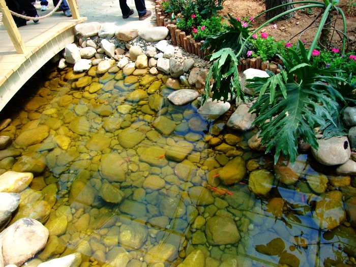 走進旅順蝴蝶園中的蝶戀花區,盡管是在室內,但宛若走進了一處南國風情的鄉間小隅,潺潺的流水,彎彎的小橋,石頭鋪就的小路,還有翠綠的葉,嬌艷的花,舞動的蝶,更有在水中游動的紅鯉,這就是大師筆下的一副彩色山水圖。