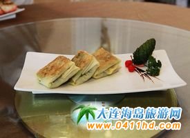 菜臍留 金州賓館的這道菜是金州老菜的特色主食之一,以小白菜為主料,調料主要為精鹽、醬油、味素、蔥姜、大蒜泥適當。具體制作方法為,小白菜摘凈洗好,加少許鹽生剁成餡,擠去水分備用。肉梭制碎,大蔥姜切成末。小白菜餡,肉梭加蔥姜末調成餡不加油,調成咸鮮口;旌厦嬷瞥25個劑子,搟成圓餅,慢慢地把餡心包進,攢成圓圓的團子俗稱臍留,上屜旺火蒸8分鐘即成。其特點是清、鮮、香。