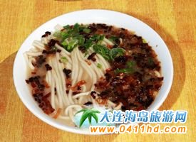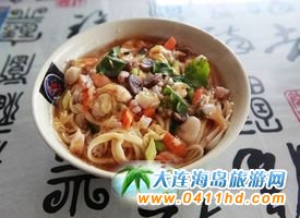 燴勺面是金州老菜的名小吃,面勁湯濃,鮮香營養。富含蛋白質,膠質及微量鈣元素。