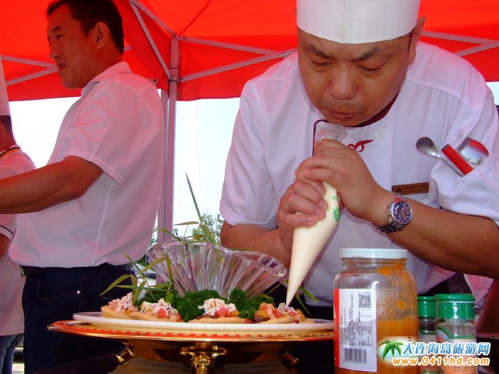 金州新區(qū)旅游局、向應(yīng)街道、美食文化協(xié)會在2015大連國際大櫻桃節(jié)期間舉辦走進土門子農(nóng)家游一條街“省級非物質(zhì)文化遺產(chǎn)”金州老菜創(chuàng)新菜品展演活動。