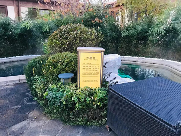 御腿泉,水溫38—40度,具有按摩效果的水柱,有緩解肌肉疼痛、背部緊張和按摩皮膚組織等。