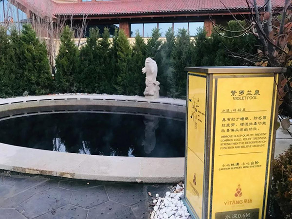 紫羅蘭泉,水溫41—42度,具有助于睡眠、防感冒,抗疲勞,增進排毒功能,改善偏頭疼的功效。