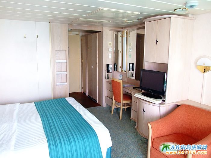 海洋神話號(hào)郵輪豪華套房面積約44㎡,配備有可以并和成雙人床的兩只單人床,并且配有可展開(kāi)作為床鋪的長(zhǎng)條沙發(fā),最多可容納3人(或2大人2兒童)入住,海景套房最大亮點(diǎn)是房間的位置以及露天觀景陽(yáng)臺(tái),位置都在郵輪的第八層,在船尾的位置,不同于普通房間在船艙的兩側(cè),因此觀景角度視覺(jué)非常突出。房間內(nèi)配有私人浴室,冰箱,化妝臺(tái),電吹風(fēng),電視機(jī),電話,110V-220V的電源,保險(xiǎn)柜,躺在床上,既可以透過(guò)落地玻璃窗觀賞到外面的海景。