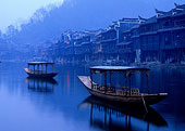 幕色中的鳳凰,四處彌漫著古老而又神秘的氣息,讓人忘了置身何處,今夕何夕。夜色漸濃,沱江上漸漸升騰起一層霧氣,兩岸的燈火漸漸燃起,小街兩旁點著燭光的銀飾攤越來越多,紅紅的燈籠也齊齊地亮了起來,倒影在水中,撲朔迷離,虛實難分。遠處小巷的點點燈光,就像歷史老人的眼神,凄迷而遙遠。從酒吧中偶爾會傳來激情高昂的音樂聲,不同風格,不同格調。而江面上,那一盞盞被寄予了希望和祝福的河燈,默默地流向遠方……